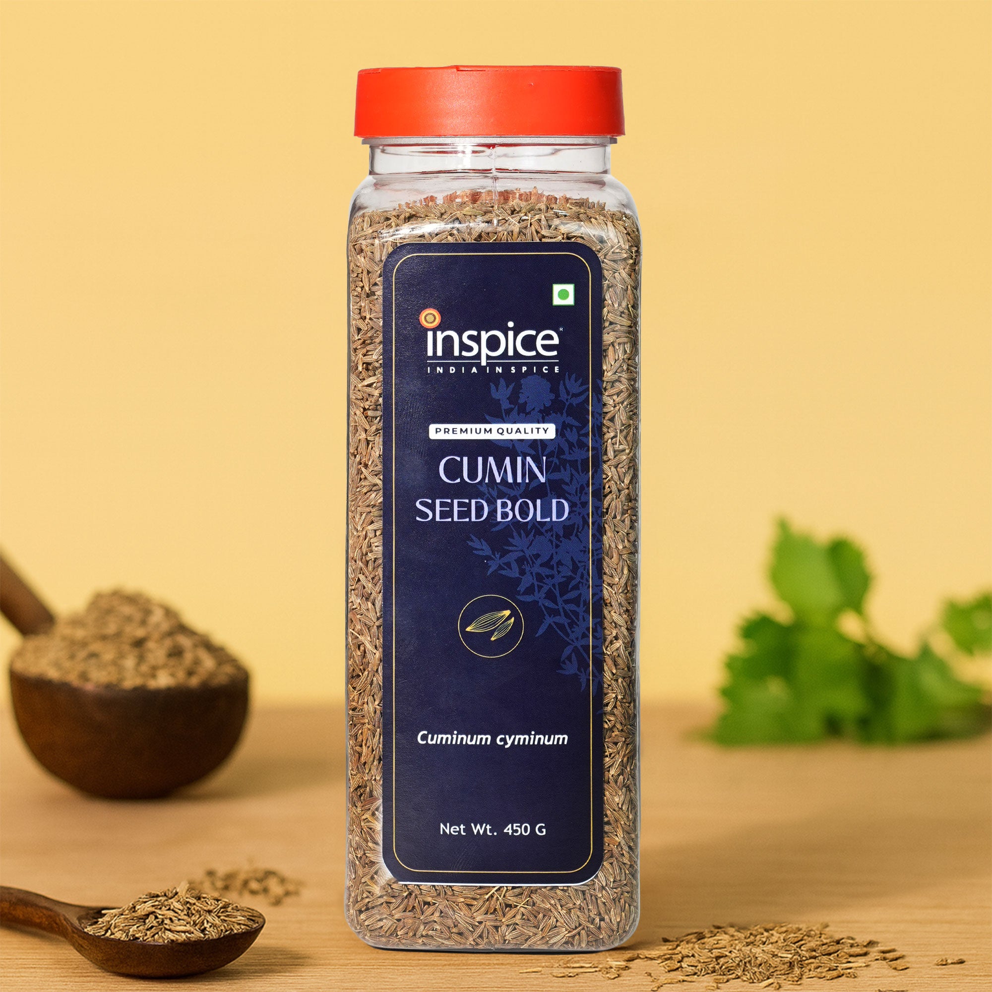 Premium bold whole cumin seeds (jeera) by Inspice. Strong aroma, pure quality, perfect for Indian cooking, tadka, curries & spice blends. 100% natural & fresh.