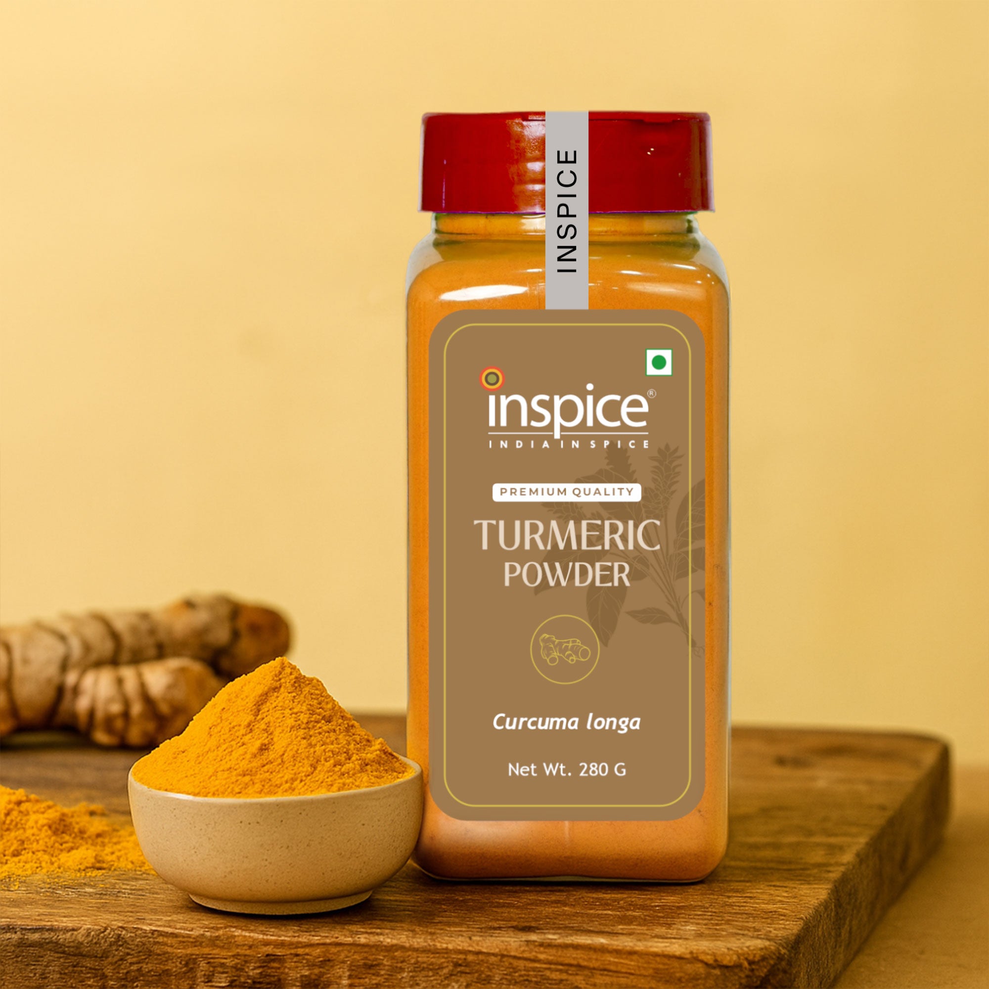 Pure Curcuma Longa turmeric powder by Inspice. Rich colour, strong aroma, and natural freshness for cooking, health drinks and daily Indian recipes.